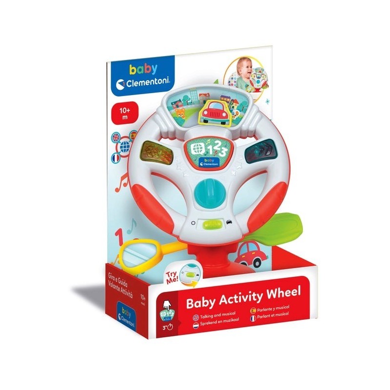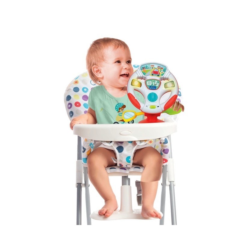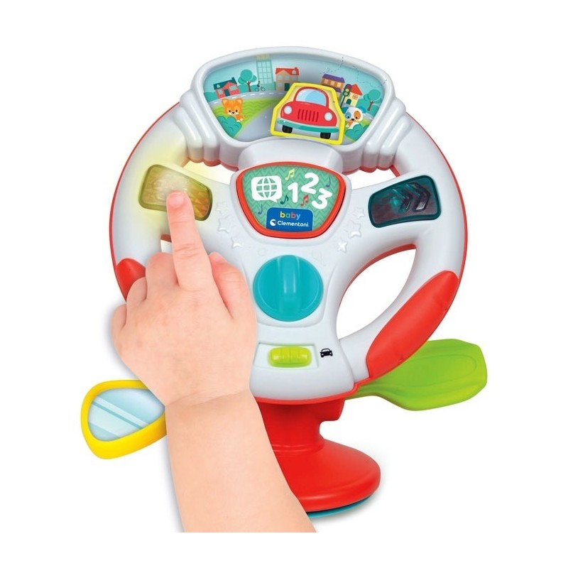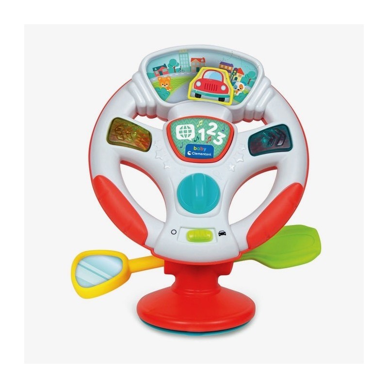 Edad recomendada: +10 meses. Un volante electrónico que habla con muchas actividades, ¡para divertirse a toda velocidad! El botón educativo ayuda al niño a descubrir los números a través de simpáticas rimas infantiles. Con luces led, una gran variedad de efectos sonoros, sonidos de los animales y canciones divertidas. Al girar el volante, el coche va a izquierda y derecha por el recorrido y activa contenidos especiales para una experiencia de conducción real. La llave activa 2 modos, con motor encendido o apagado. El retrovisor y la caja de cambios se mueven y las actividades mecánicas ayudan al niño a desarrollar la destreza manual. El volante dispone de una práctica ventosa para facilitar su fijación.
