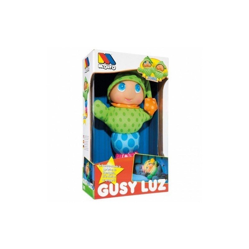 Gusiluz con dos caras (de día y de noche) de Moltó. Por la noche cuida el sueño del bebé con su luz y sus sonidos relajantes. Y por el día se divertirá con sus actividades. Tacto suave. Gusiluz se ilumina cuando le aprietas su barriguita. Si la sueltas de apagará. Funciona con pilas. 2 caras: Día y Noche. Edad recomendada: Entre 1 y 2 años. Dimensiones del producto: 28 x 13 x 9,5 cm