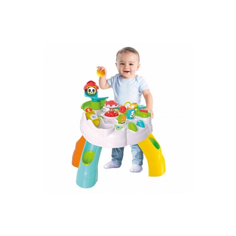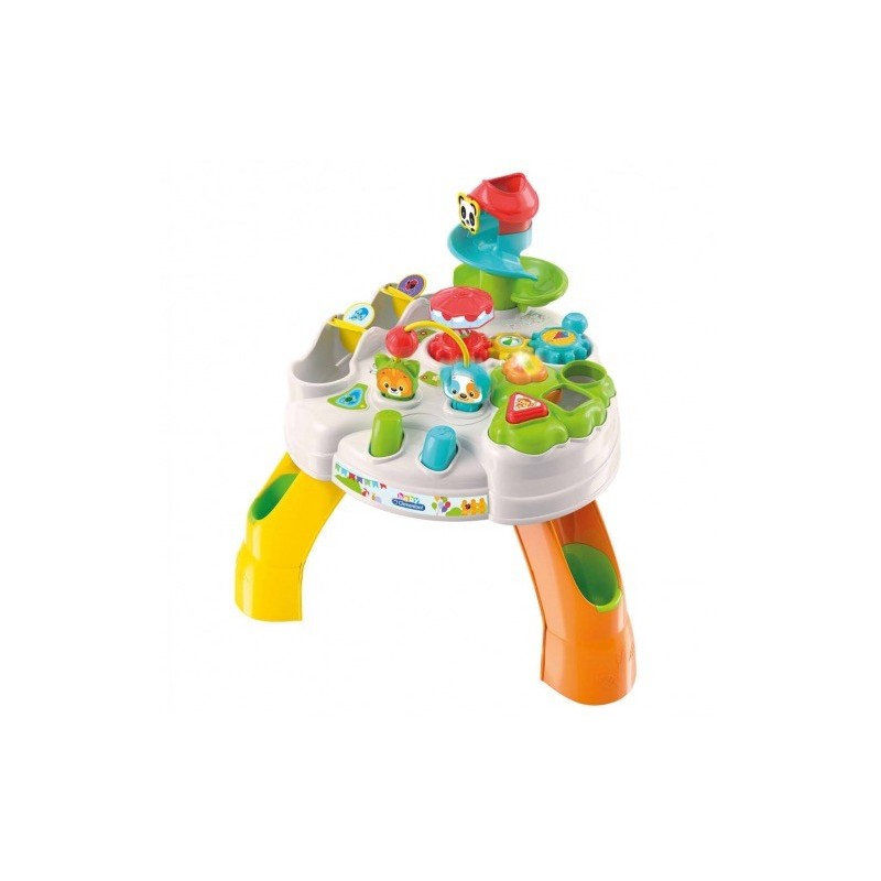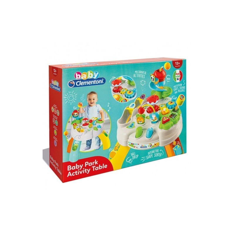 La alegre mesa de actividades para bebés Park de Clementoni traerá mucha diversión a tus pequeños. Además, fomenta las habilidades manuales, la percepción visual y el reconocimiento de la relación causa-efecto. Este juguete interactivo de actividades para bebés está ambientado en el divertido mundo de los parques de atracciones. Consta de muchas actividades: en el área de formas tu bebé interactúa con luces y sonidos, y los personajes se mueven cuando se presionan botones. El set incluye una divertida pista con bolas y toboganes que termina en los coloridos patas de la mesa. Edad recomendada: +12 meses.