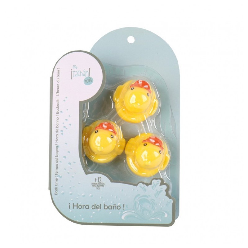 Edad recomendada: +12 meses. Set de 3 patitos amarillos de goma. Con estos patitos de goma conseguimos que el momento de asearse sea divertido para nuestros peques. Además, experimentan con el material de los patitos y ven como la goma vuelve a su forma original. Observan como flotan en el agua e incluso pueden aprender a contar hasta tres.