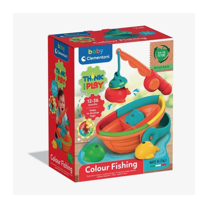Edad recomendada: +12 meses. ¡Cuatro alegres pececitos para atrapar y colocar en el bote según su color! Un juego clásico actualizado para que resulte sencillo, útil y divertido para los niños, permitiéndoles desarrollar su coordinación y entrenar su pensamiento lógico. El juego tiene un diseño sofisticado, colores suaves y está fabricado con plástico reciclado, en línea con la filosofía Play For Future. Una caña de pescar con hilo magnético para un funcionamiento sencillo e inmediato. Con 4 pececitos para guardar en el compartimento del color adecuado. La cesta es también un bote flotante, así que tu bebé puede jugar mientras se baña.