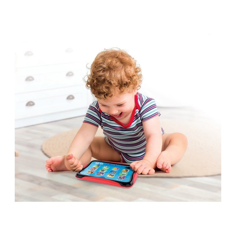 Edad recomendada: +12 meses. Tamaño de caja (AxPxA) 5 x 21 x 25 cm. Una tablet con 12 botones táctiles y un montón de simpáticos iconos. Perfecta para estimular el juego de imitación y, al mismo tiempo, hacer que el niño juegue lejos de las pantallas. ¡Números, letras, música y palabras! Gran variedad de actividades educativas para aprender jugando.