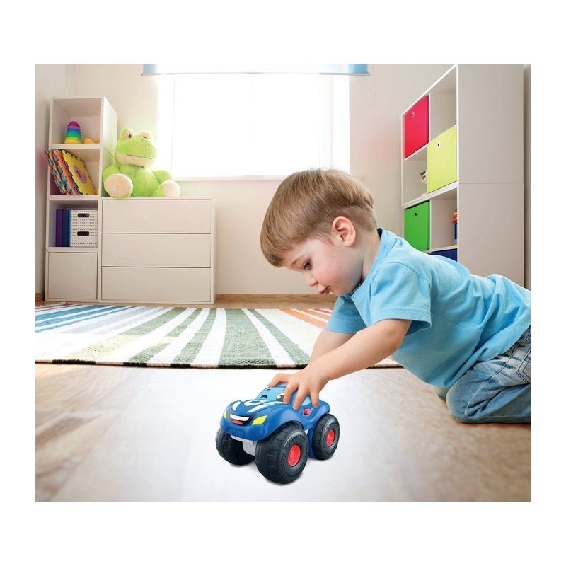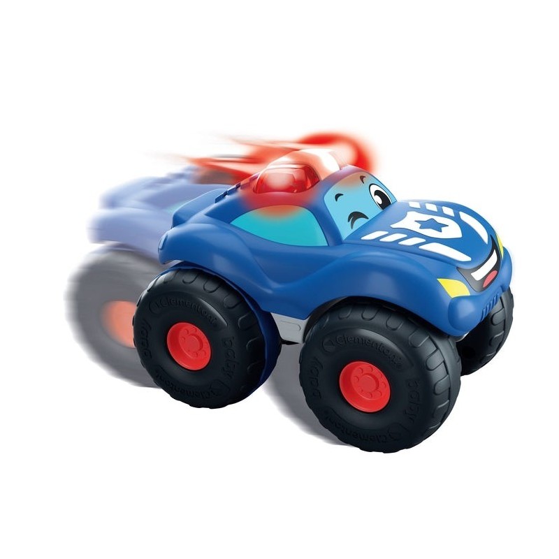 Edad recomendada: +12 meses. El botón interactivo activa luces y efectos sonoros realistas. El niño podrá divertirse con este coche de juguete haciendo que salga disparado gracias a la función de retro-fricción. Sus grandes ruedas lo convierten en un coche original y rápido, fomentando el movimiento del niño y la percepción del espacio que le rodea.