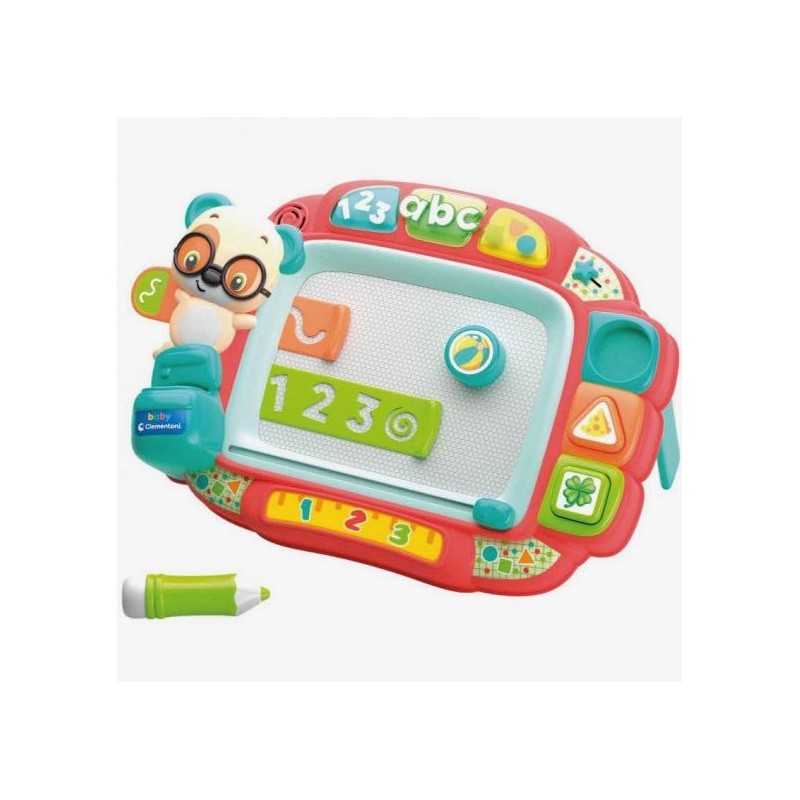 Juego 2 en 1: una pizarra para los más pequeños y un centro de actividades electrónico. Una colorida pizarra para aprender a pintar, con un lápiz magnético que se puede borrar; pero a la vez es un centro de actividades con canciones, ritmos infantiles; y muchos conocimientos sobre números, formas y letras. La primera pizarra creada para bebés. Una ayuda excelente para introducir a los más pequeños en el dibujo, con divertidas formas y guías que ayudarán a los más pequeños con el movimiento de las manos. Melodías, sonidos y efectos luminosos para llamar la atención del bebé, a la vez que muchas otras funciones le ayudarán a perfeccionar sus habilidades motoras. Todas las actividades, componentes y botones se han estudiado para facilitar el juego sin esfuerzo. Además del dibujo a mano alzada, los bebés podrán también utilizar las reglas extraíbles, las plantillas y las formas magnéticas; que contribuirán al aprendizaje mientras juegan. Edad recomendada: +18 meses.