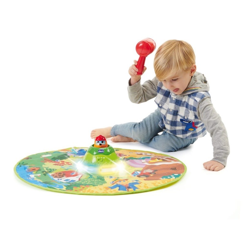 Tapete interactivo con gran efecto sorpresa: usa el martillo, la mano o el pie para hacer que el topito salte de la madriguera. • Tapete electrónico de tema agrícola con 8 áreas interactivas. 68 cm de diámetro para jugar y moverse • 3 modos de juego: juego libre, reconocer luces y sonidos, y cuenta atrás • Con luces, música y sonidos • Incluye el topito y el martillo • Los objetivos se pueden golpear con el martillo o con la mano o el pie. • Estimula la coordinación motora y la reacción a los estímulos Edad recomendada: +18 meses.