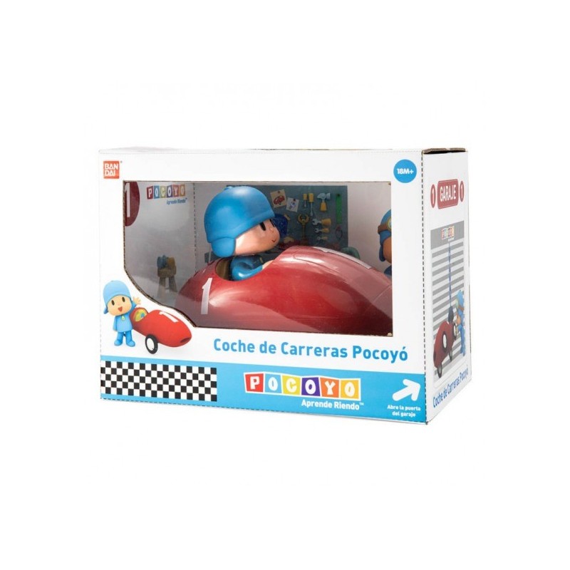 Aprieta la cabecita de Pocoyó y el coche de carreras de Pocoyó arranca, tiene dos velocidades, música y sonido. ¡El coche choca y cambia de dirección! El packaging es un garaje con rampa. Edad recomendada: +18 meses.