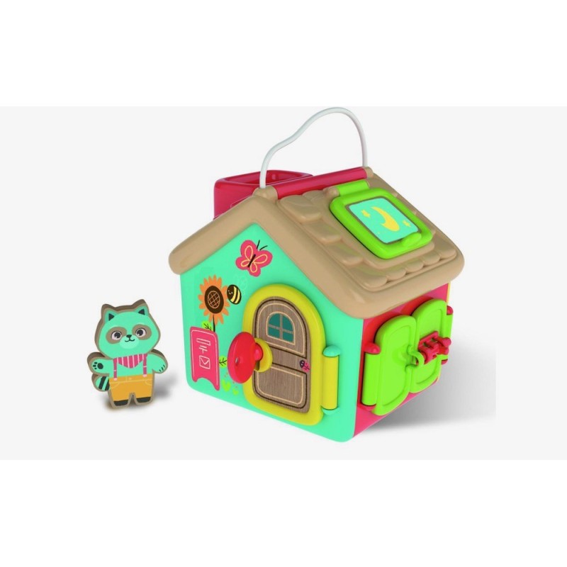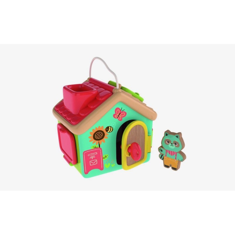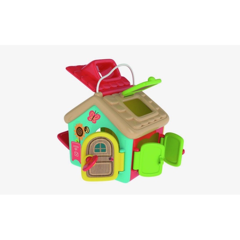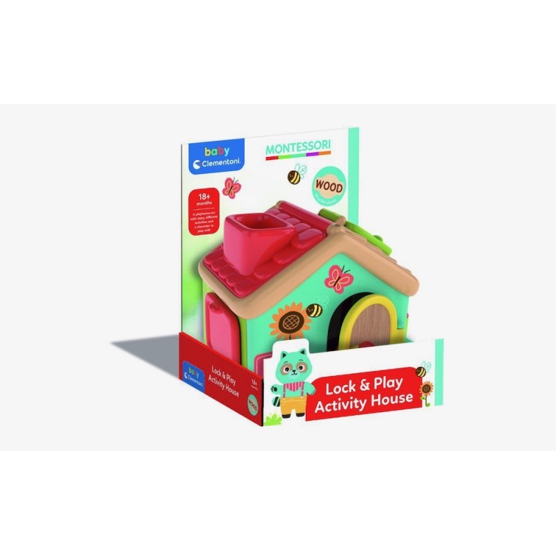 Un playset con un personaje incluido, muchas ventanas y puertas, cada una con su cierre, para experimentar diferentes actividades relacionadas con la manualidad. Hecho de plástico reciclado con elementos de madera, estimula la sensorialidad, la coordinación del ojo mano, la comprensión de las relaciones causa-efecto y el razonamiento lógico. El juego, inspirado en la pedagogía Montessori, es un verdadero gimnasio para perfeccionar el movimiento fino de la mano, enseñando mientras tanto a utilizar objetos de uso común: enhebrar y girar una llave, abrir puertas correderas, desbloquear cerraduras simples, descubrir de vez en cuando nuevos ambientes de la casita. Un clásico juego de los cierres (Lock Box) Montessori. Dimensiones 21x24x52,3 cm. Edad recomendada: 18 meses.