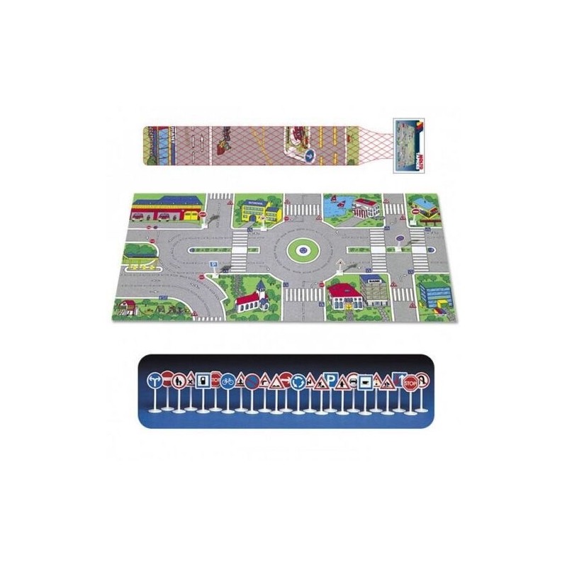 TAPIZ CITY, 25 PZAS.(124x60 cm.) Tapiz infantil de ciudad de 124x60 cm con 24 señales de tráfico. Edad recomendada +3 años.