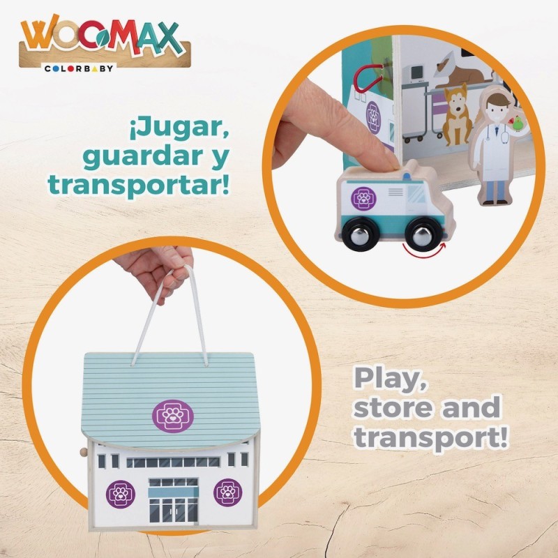 WOOMAX-HOSPITAL VETERINARIO MADERA. Contiene 9 piezas. Edad recomendada: +3 años.