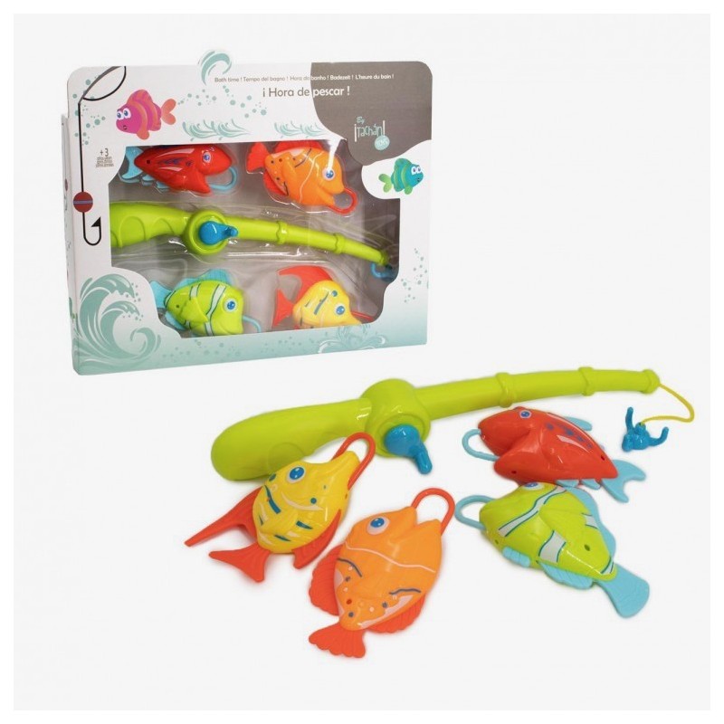 Edad recomendada: +3 años. ¡El fondo del mar en su bañera! Juego de pesca para la bañera. Incluye una caña de pescar ligera y ergonómica y cuatro peces de colores. Mejora la motricidad fina y la coordinación ojo mano.