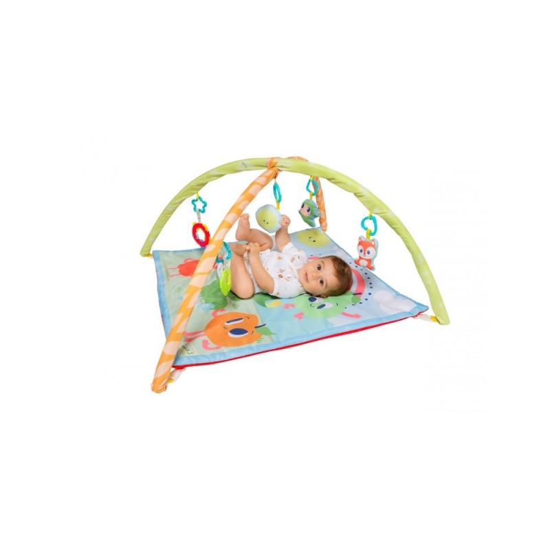 Descubre el Gusyluz Activity Gym 3 en 1: El Espacio Ideal para el Crecimiento de tu Bebé El Gusyluz Activity Gym 3 en 1 de Molto es mucho más que una simple manta de actividades. Diseñado para acompañar a tu bebé desde sus primeros días, este gimnasio infantil ofrece un entorno seguro y estimulante que fomenta el desarrollo físico y cognitivo mientras se divierte. Un Gimnasio Sensorial Completo Este gimnasio de actividades está equipado con cinco juguetes colgantes que invitan a la exploración y al descubrimiento. Los arcos suaves y seguros sostienen estos adorables personajes que ayudan a mejorar la coordinación ojo-mano y la motricidad fina. Los colores vivos y las formas amigables están especialmente diseñados para captar la atención del bebé, estimulando su vista y fomentando el reconocimiento de formas y colores. Estimulación Sensorial y Diversión El Gusyluz Activity Gym no solo es visualmente atractivo, sino que también ofrece una variedad de texturas y sonidos. Algunos juguetes cuentan con texturas crujientes y suaves, ideales para el desarrollo sensorial de los más pequeños. Estos elementos interactivos invitan a los bebés a tocar, agarrar y explorar, promoviendo su curiosidad natural y su capacidad de aprendizaje.