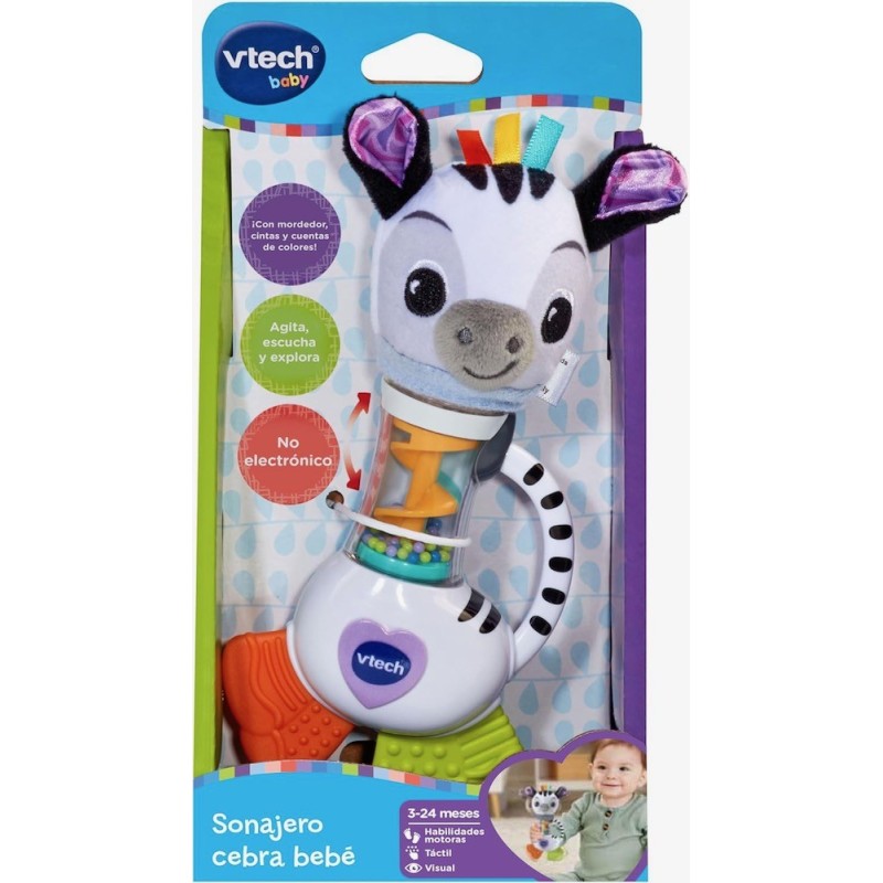 Edad recomendada: +3 meses. Adorable sonajero de cebra para bebés a partir de 3 meses, diseñado para estimular sentidos y motricidad. Ideal para las primeras etapas de desarrollo del bebé. AGITA Y ESCUCHA: Las coloridas bolitas generan un relajante sonido de lluvia al moverse, captando la atención del bebé. TEXTURAS Y EXPLORACIÓN: Cuenta con orejas y cintas de distintas texturas, ideal para estimular el sentido táctil y la curiosidad de los más pequeños. PATITAS DE MORDISCO: Las patas rugosas son perfectas para que el bebé las muerda y calme sus encías en desarrollo.