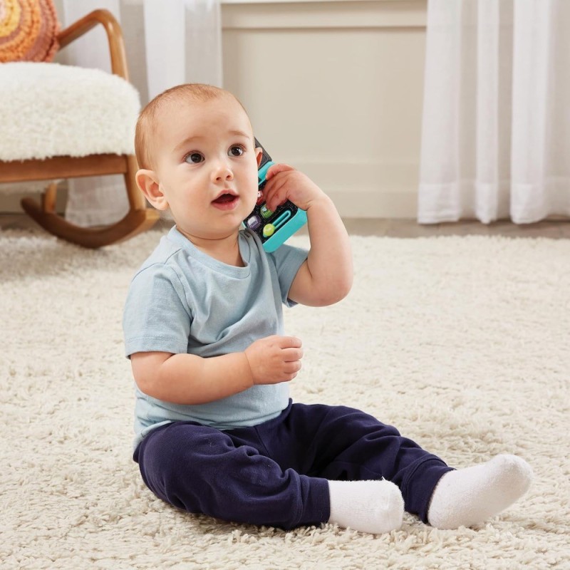 Edad recomendada: +3 meses. Pack de juguetes interactivos para bebés +3 meses, diseñado para estimular los sentidos y las habilidades motoras de tu pequeño. DISEÑO FUNCIONAL – Tu bebé podrá jugar con tres llaves que simulan unas reales, incluyendo sonajeros de texturas variadas y dos botones con sonidos mecánicos para despertar su curiosidad. TELÉFONO INTERACTIVO – Con 6 botones luminosos que simulan apps, este teléfono ofrece frases, canciones y melodías para fomentar el aprendizaje temprano de tu niño. MOTRICIDAD Y JUEGO SENSORIAL – La tapa del teléfono cuenta con 6 botones pop it de silicona, ideales para que tu bebé explore y desarrolle su motricidad fina mientras experimenta con distintas texturas. ELEMENTOS INTERACTIVOS – Tanto el pop it como los sonajeros y el botón deslizante promueven la exploración activa, animando a tu pequeño a descubrir nuevas sensaciones.