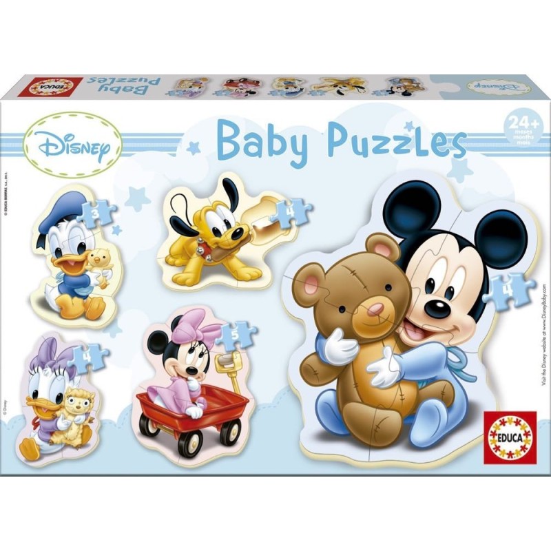 5 puzzles progresivos de 3 a 5 piezas personajes Baby de Disney Piezas más grandes, más gruesas y más fáciles de manipular: Estimulan la fijación de la atención así como el desarrollo de la psicomotricidad, la curiosidad e imaginación de los más pequeños Nuevas imágenes con personajes y temas favoritos de los niños. Los puzzles Educa Borrás se fabrican en España utilizando materias primas de primera calidad, reciclables y respetuosas con el medio ambiente Dimensiones del producto: 31,5 x 21,7 x 4,5 cm Edad recomendada: a partir de 24 meses.