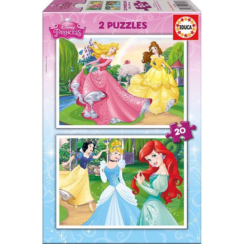 Caja de 2 puzzles de 20 piezas cada uno con bonitos diseños de las Princesas Disney Estos 2 puzzles están compuestos por grandes piezas, perfectamente acabadas para que sea sencilla y segura su manipulación por los ninos N piezas por puzzle: 20 Tamaño del puzzle montado: 28 x 20 cm Producto oficial Disney Dimensiones de la caja: 38 x 28 x 12 cm Edad recomendada: entre 3 y 5 años