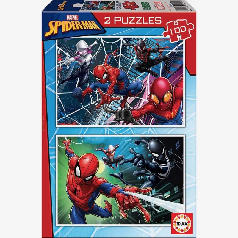 Set de 2 puzzles de 100 piezas, Spider-Man. Dimensiones aproximadas del puzzle una vez montado: 40 x 28 cm. Recomendado para niños y niñas a partir de 6 años.