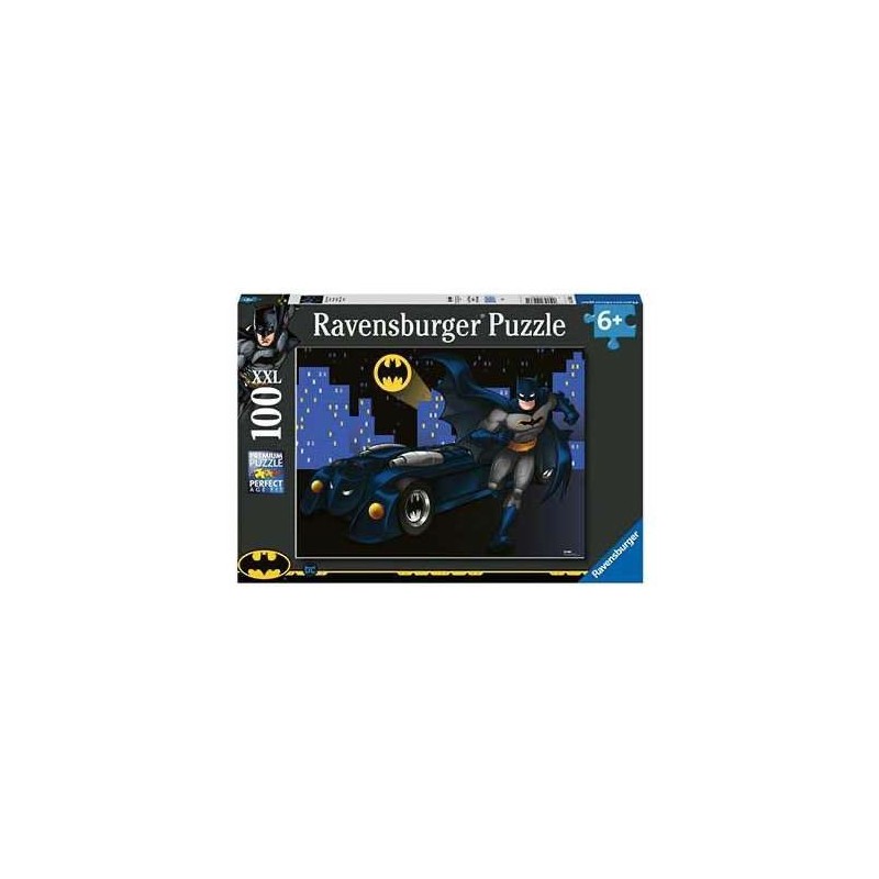 Puzzle Ravensburger de 100 piezas XXL con imagen de Batman. Puzzles Ravensburger calidad pieza a pieza. Piezas siempre distintas, troqueladas con cortadoras hechas a mano. Piezas que ensamblan perfectamente. Acabados especiales libres de reflejos. Piezas resistentes que no se doblan. Hechos de carton reciclado. Fabricación europea.