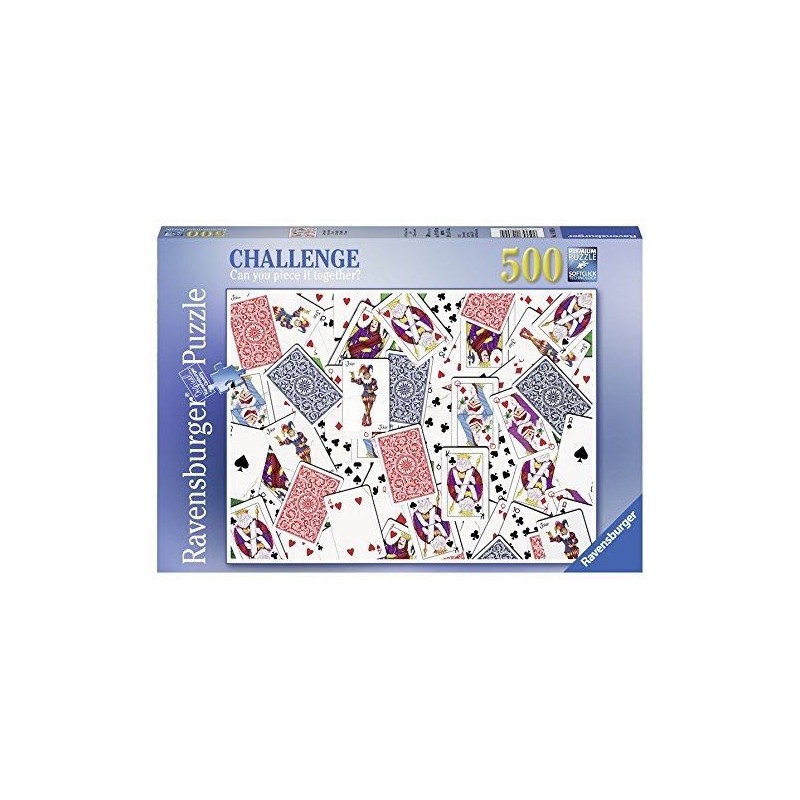 Puzzle de 500 piezas con el dibujo 52 cartas. Ravensburger significa perfecta armonía entre tradición y calidad y cada puzzle garantiza diversión y satisfacción incomparables. Ravensburger no sólo es sinónimo de robustez a prueba de niños, sino también de respeto por el medio ambiente, gracias a la amplia utilización de materiales reciclados, y la seguridad, gracias a los controles permanentes y materiales no tóxicos y seguros al 100%. Cada una de las piezas es única y encaja a la perfección. La calidad de Ravensburger se consigue gracias a los troqueles realizados a mano - uno de los muchos principios de Ravensburger es la pasión por la excelencia. Dimensiones del puzzle: 49 x 36 cm. Edad recomendada: a partir de 9 años