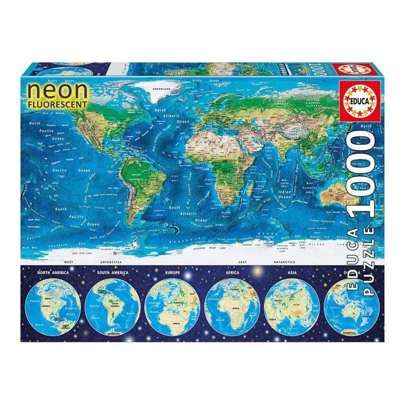 PUZZLE 1000 MAPAMUNDI FÍSICO NEÓN