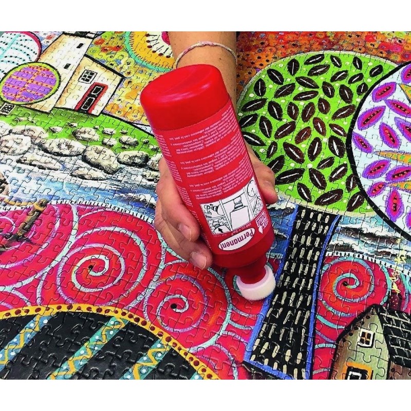 Cola Pegamento permanente para puzzle. Diseñada para pegar el puzzle una vez montado y conservarlo como un cuadro. Bote de 250 ml.