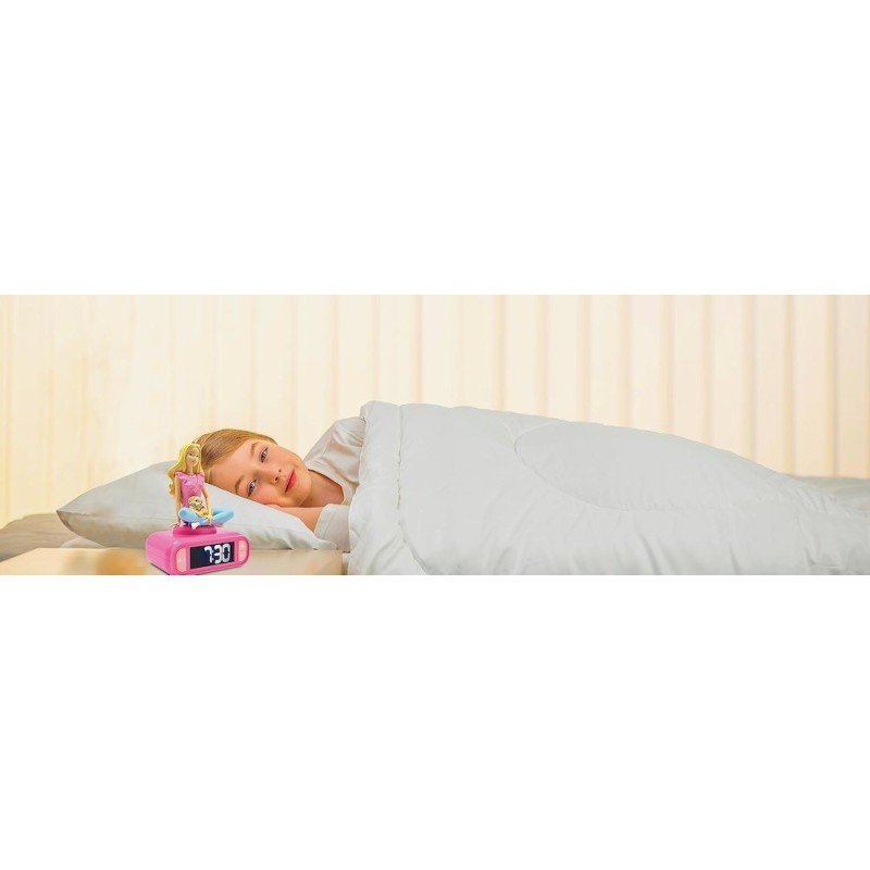 FASCINANTE DISEÑO DE BARBIE - Adopta el encanto de Barbie con nuestro cautivador reloj despertador con luz nocturna que se ilumina al tocarlo, añadiendo magia a la hora de dormir. PANTALLA LCD PARA DORMIR TRANQUILO - Disfruta de noches tranquilas con la opción de atenuar o mantener apagada la pantalla LCD, lo que garantiza un sueño reparador sin luces molestas. 6 SONIDOS INSPIRADOS EN BARBIE - Transpórtate al mundo de Barbie con 6 encantadores tonos de llamada, volumen ajustable y una función de repetición para una experiencia de despertador personalizada. FÁCIL CONTROL DE LA ALARMA - Sólo tiene que tocar la parte superior o a Barbie para silenciar la alarma, para que las mañanas sean un juego de niños, y no pierda el ritmo con el indicador de batería baja. SUMINISTRO DE ENERGÍA VERSÁTIL - Alimentado cómodamente por 3 pilas AA/LR6 (no incluidas), nuestro reloj despertador con luz nocturna es la combinación perfecta de diseño adorable y funcionalidad.