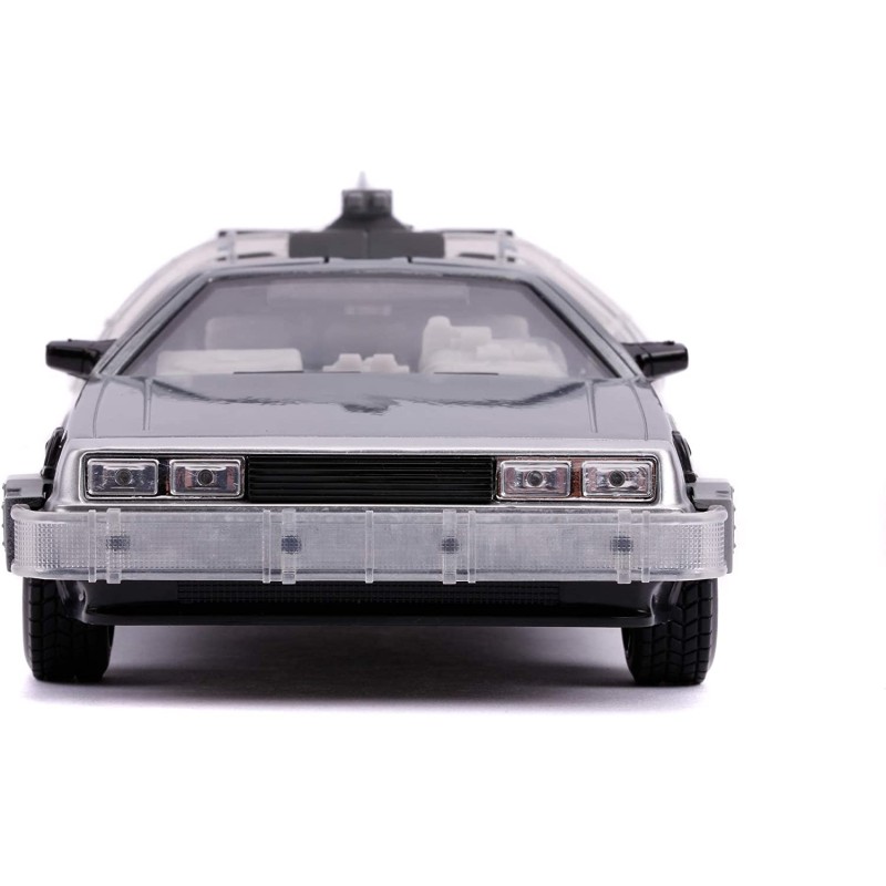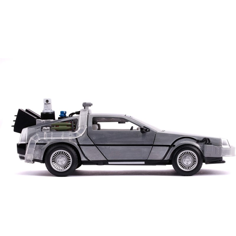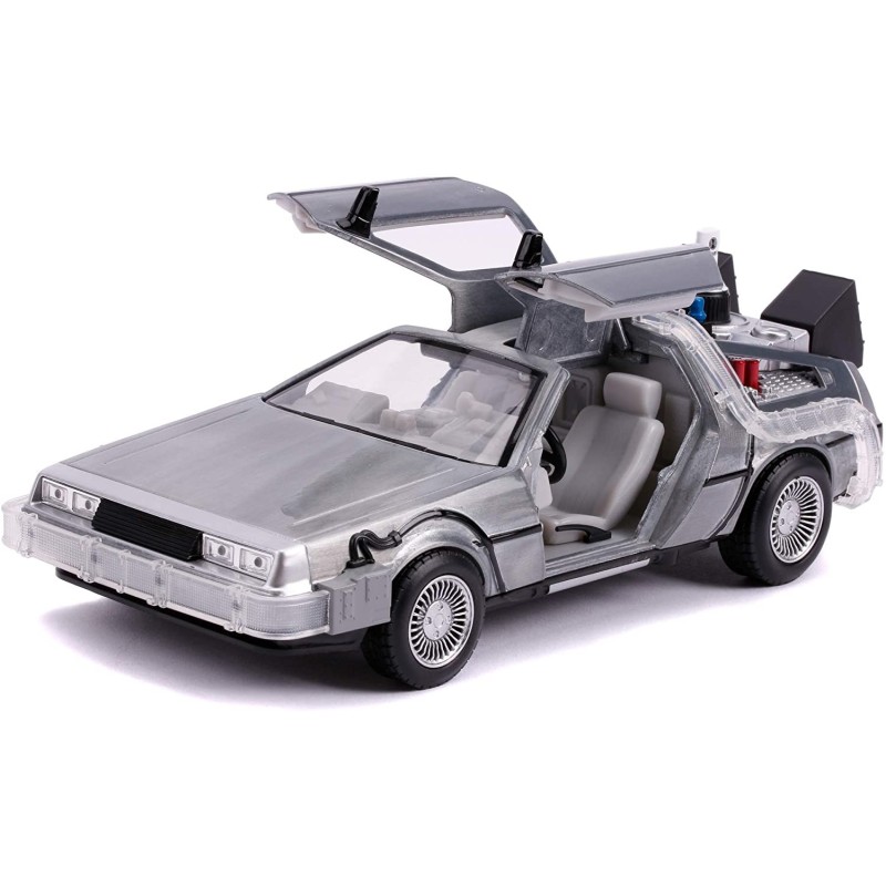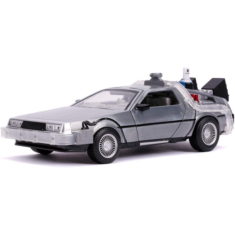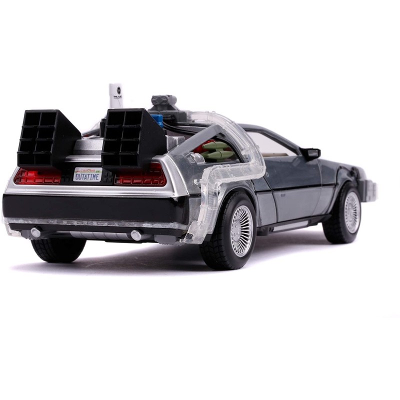 Viaja en el tiempo con uno de los vehículos más icónicos de la historia del cine: el DLorean convertido en máquina del tiempo tal y como se ve en la película regreso al futuro (1989); hecho de metal, con función de luz y modo planeador, este vehículo en escala 1:24 debe estar presente en todas las colecciones; las puertas se abren; modalidad planeador (las ruedas se levantan). Edad recomendada: +8 años.