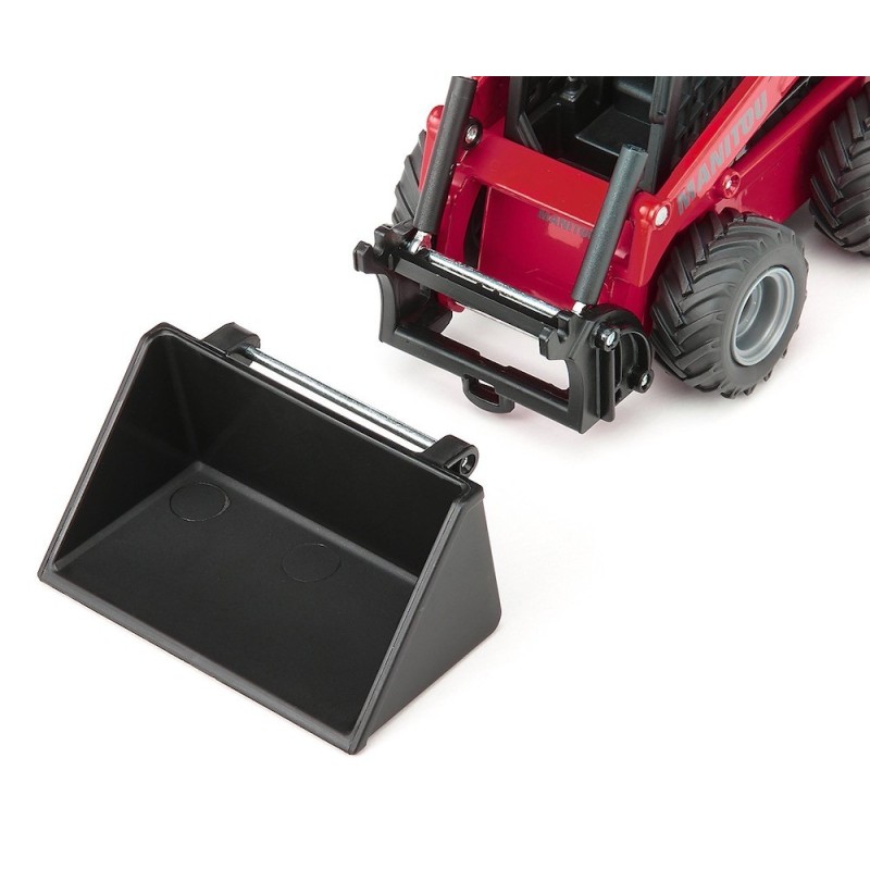 Escala: 1:32 Medidas: 143x58x88 mm. Carga de heno y forraje, inclinación para grava y arena... La cargadora compacta Manitou 3300V proporciona un soporte ágil para granja y para la construcción. Con neumáticos de goma, el pequeño vehículo maniobrable se mueve con seguridad sobre el terreno inestable. En la miniatura de escala 1:32, el brazo de carga y la pala son móviles. Además, gracias al sistema intercambiable SIKU, se pueden conectar otros conjuntos al brazo de carga.