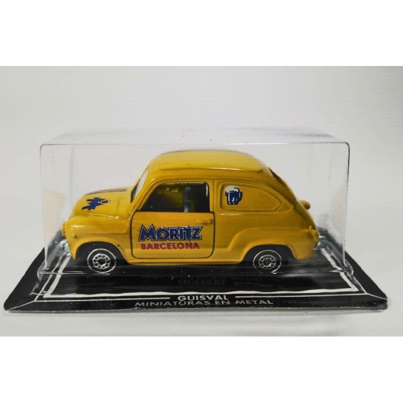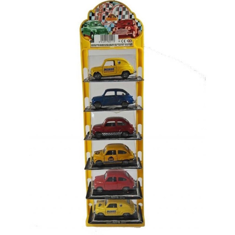 Pack 6 unidades. Coche Seat 600. Colecciona los míticos Seat 600 de la marca Guisval, con diferentes colores y diseños. Escala 1:58. Hay 5 modelos: en amarillo con diseño Moritz Barcelona, en azul, en granate con banda de competición, en amarillo con diseño 88 y en rojo. Se abren las puertas. Fabricados en metal, con elementos de plástico. Dimensiones: 7 x 3,5 x 3 cm. Fabricado en España.