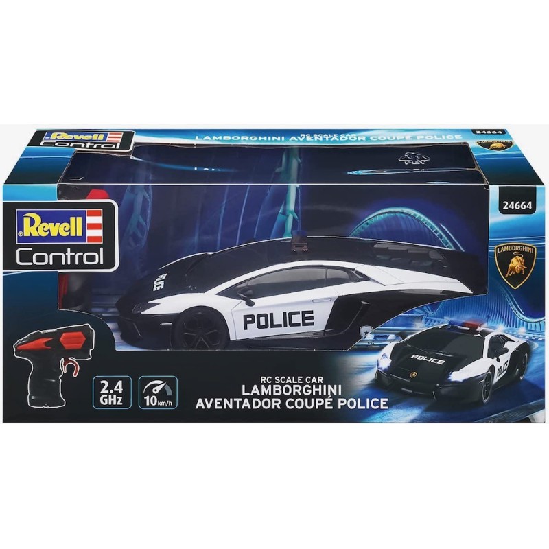 23664 Lamborghini Aventador Coupé Police El coche a escala RC de 2 canales con mando a distancia de 2,4 GHz es perfecto para principiantes. ¿Listo para algunas persecuciones? Alcance: 15 m Longitud: 200 mm Ancho: 95 mm Altura: 52 mm Peso: 188g Escala: 1:24 Coche a escala RC con mando a distancia de 2,4 GHz. Réplica detallada a escala 1:24 con licencia Lamborghini original. Ejecución estable del modelo. Con iluminación frontal LED. Mando a distancia de 2,4 GHz apto para diestros / zurdos. Edad recomendada: +8 años.