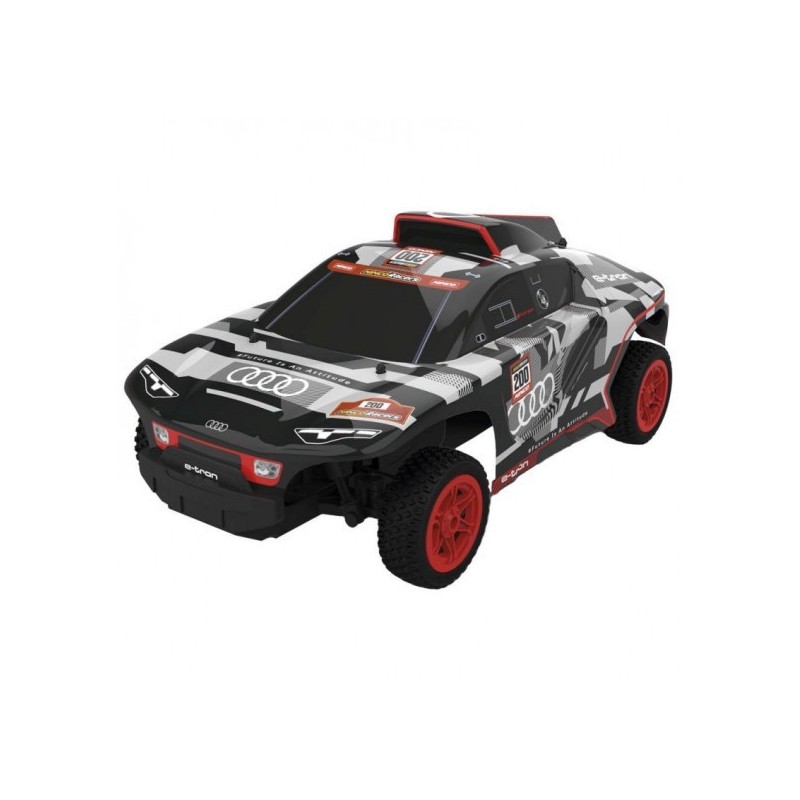 Conviértete en un auténtico piloto con este Audi RS Q E-Tron teledirigido escala 1:10, con emisora de 2.4 Gh, equipado con batería de Li-Ion de 7,4V. Carrocería termo-conformada muy resistente. Suspensión en las 4 ruedas. Edad recomendada: +6 años.