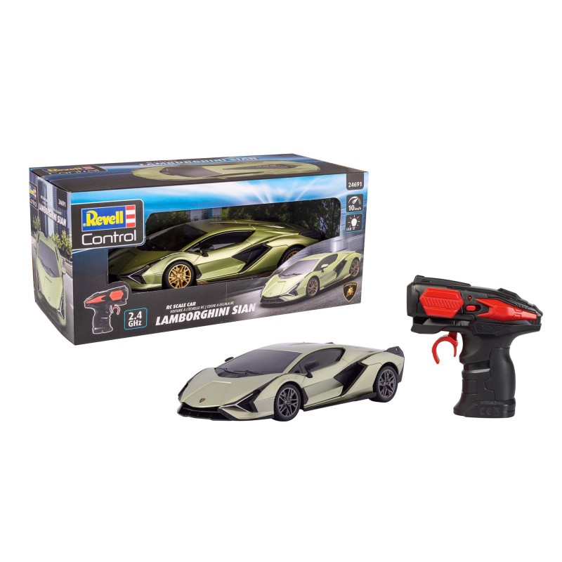 Edad recomendada: +8 años. Longitud: 205 mm Velocidad máxima RC: 10 km/h Sistema de radio: GHz Coche RC a escala 1:24. Réplica detallada del superdeportivo Lamborghini Sián. Con Mando a distancia de 2,4 GHz, apto para conductores diestros y zurdos. Iluminación frontal LED. Velocidad: 10 km/h. Longitud: 205 mm.