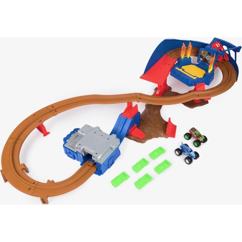 Juega con más emoción que nunca con los camiones monstruo a escala 1:64. Estos coches de juguetes combinan la fuerza y el rendimiento de los Monster Trucks para ofrecer una experiencia de juego llena de acción y acrobacias imposibles. WORLD FINALS DE MONSTER JAM: El escenario Supercharge Speedway se ilumina y te permite llevar toda la adrenalina del circuito con forma de 8 de la final del mundial de Monster Jam oficial a casa. ¡Corre en un bucle cerrado para disfrutar en una carrera sin fin.
