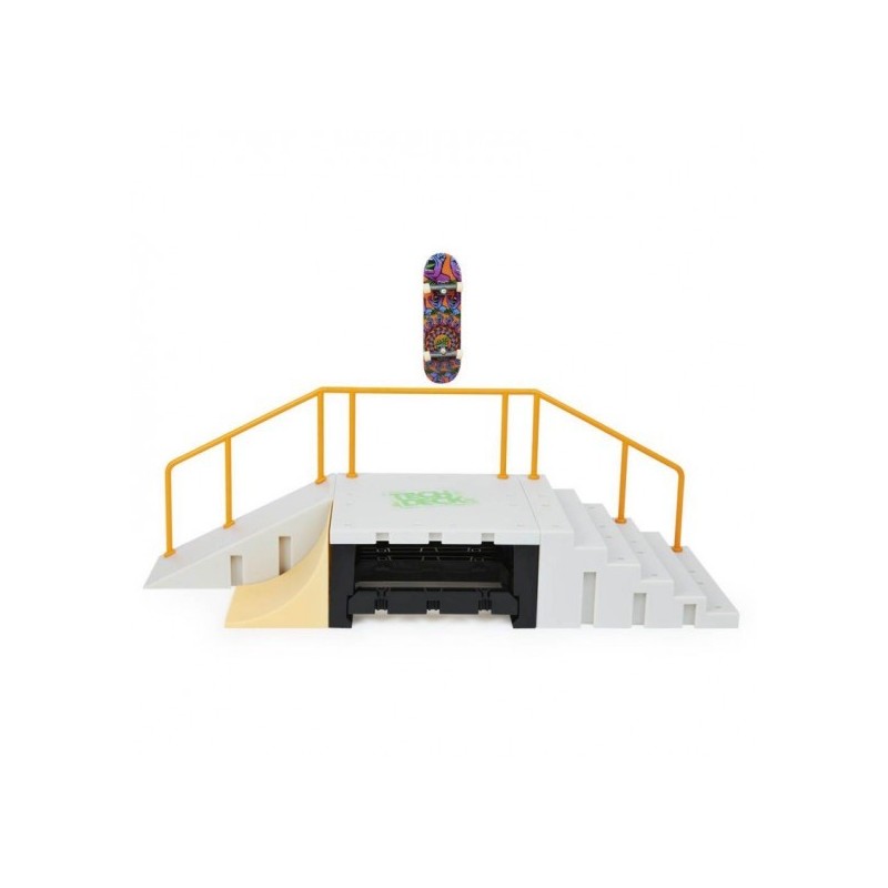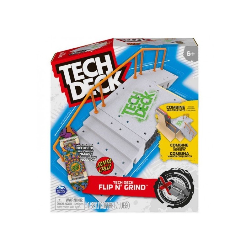 El juego de rampas Jump N' Grind X-Connect Park Creator incluye todo lo que necesitas para construir tu propio skate park y perfeccionar tus habilidades con el skate de dedos. Crea combinaciones diferentes con dos barandillas, las escaleras, el bordillo y las rampas, y practica todos tus trucos. Salta por encima de las escaleras, deslízate por el bordillo o la baranda, o personaliza el Tech Deck skate park tal y como quieras. Patina por el skate park con la exclusiva fingerboard de Toy Machine de Daniel Lutheran incluida y añádela a tu colección de mini skates para dedos. Incluye: 1 fingerboard de Tech Deck, 1 rampa, 1 rampa montada, 1 rampa larga, 1 baranda, 1 baranda corta, 1 escalera, 1 cubierta de hubba para la escalera, 1 hubba para la escalera, 9 conectores de X, 6 conectores de X grandes, 9 soportes, 1 guía de instrucciones. Edad recomendada: +6 años.