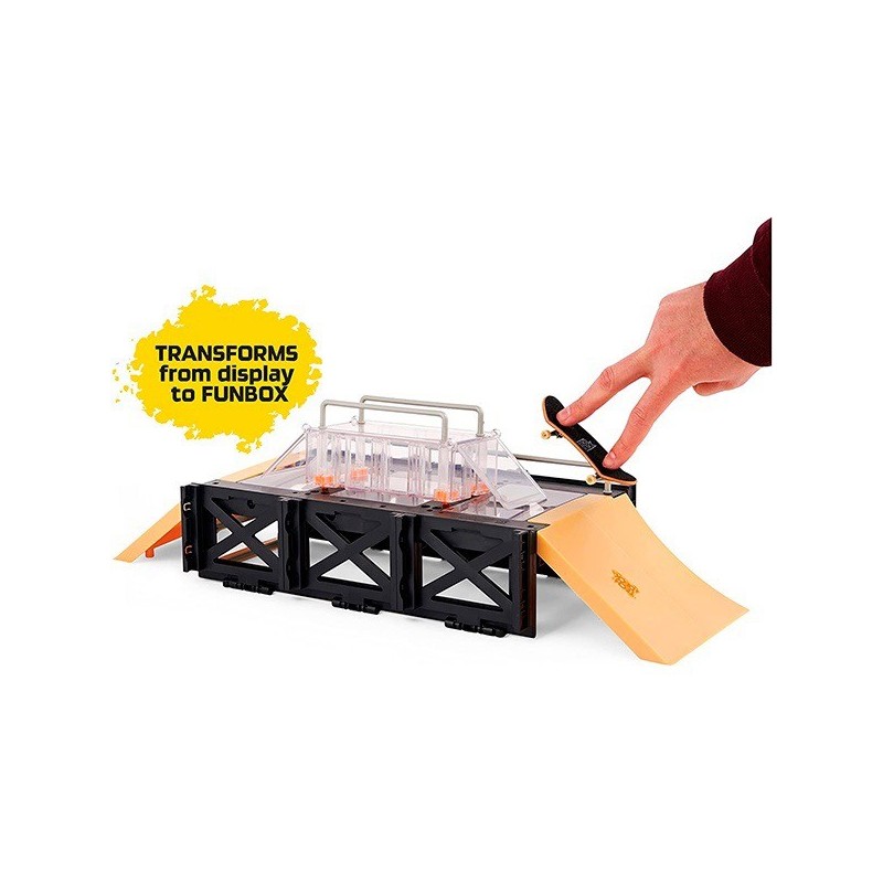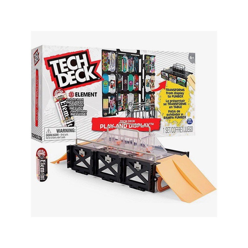 Play and Display es un exhibidor de monopatines Tech Dech que se transforma en rampa. Almacena hasta 24 skates y llévalos dónde quieras gracias a su asa de transporte. ¡Incluye un skate exclusivo! Edad recomendada: +6 años.
