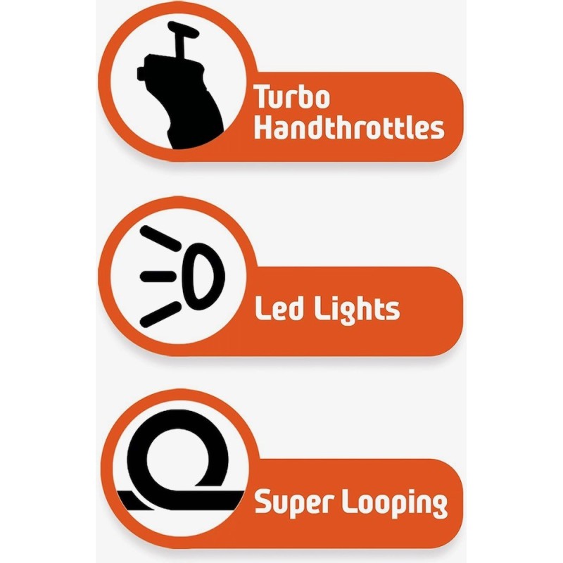 Un circuito con un diseño espectacular, incorporando doble looping Incluye dos coches Ford Puma híbridos del Campeonato del Mundo de WRC. El circuito tiene un recorrido de 3.20 metros y loopings de vértigo. Montaje rápido y fácil; funciona con pilas.