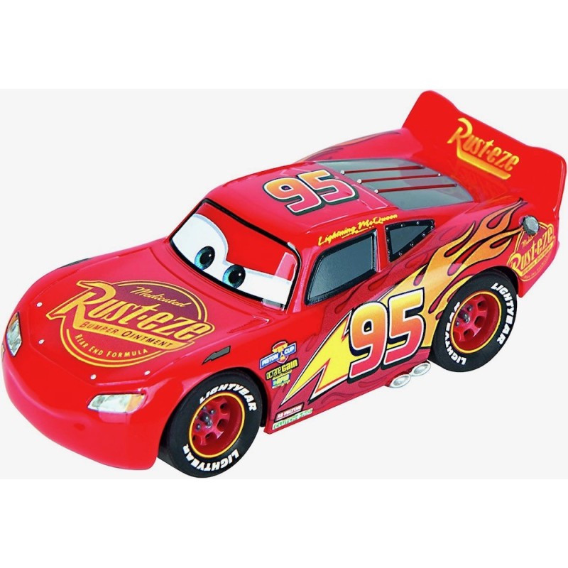 En el duelo de gigantes de los pequeños pilotos de carreras a partir de 3 años, Rayo McQueen y Dinoco Cruz Ramirez emprenden sus emocionantes aventuras en la Carrera FIRST "Disney-Pixar Cars - Power Duell". Los dos son rivales en la pista en las conocidas películas infantiles, pero en Carrera demuestran que también pueden divertirse juntos. El circuito Carrera FIRST es perfecto para los pequeños pilotos y proporciona una fácil introducción al mundo Carrera. En la pista de 2,4 metros de largo en forma de ocho, las peonzas giratorias proporcionan aún más diversión y acción. Los elementos decorativos fieles al original para la pista de carreras pueden recortarse del embalaje y ponerse en escena con cariño. El set incluye dos mandos especialmente diseñados para las manos de los niños. Se necesitan cuatro pilas de tipo C para controlar los coches. Arranca ahora con tus amigos en las divertidas carreras con tus corredores favoritos. Edad recomendada: +3 años.