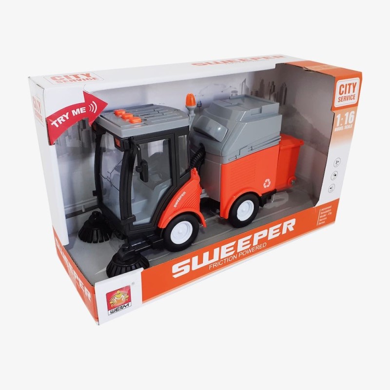 Vehículo Barredor con mecanismo de fricción y sonidos. Escala 1:16. Edad recomendada: +3 años.