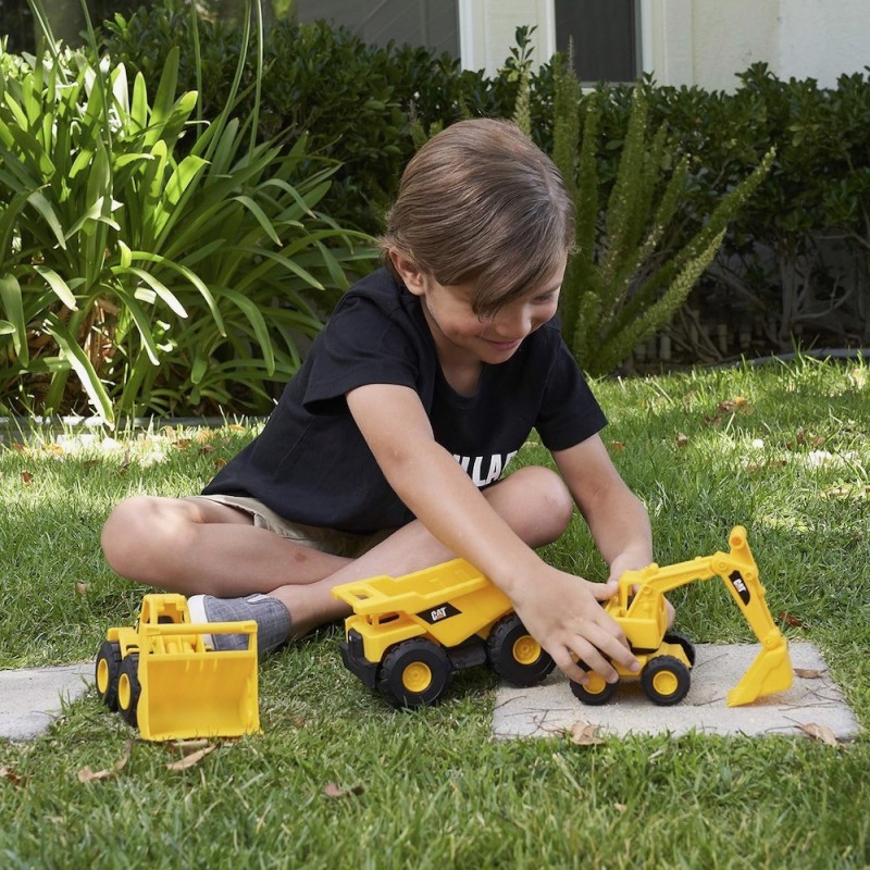 Edad recomendada: +3 años. Medidas vehículos: 18 cm. Pequeño pero duro, el pack de 3 minivehículos de construcción es ideal para comenzar tu flota de construcción. Estas máquinas de construcción de 18 cm para empujar te permiten controlar cada movimiento. El pack de 3 juguetes de construcción CAT tiene un camión miniatura con volquete, una mini excavadora y una pala mecánica, ideales para niños a partir de 3 años. Mueve y coloca fácilmente los brazos y palas articulados como en los camiones de construcción CAT reales, conocidos por su gran calidad. Estos juguetes de construcción tienen la misma elaboración para soportar la intemperie, y son perfectos para jugar en interior y exterior.