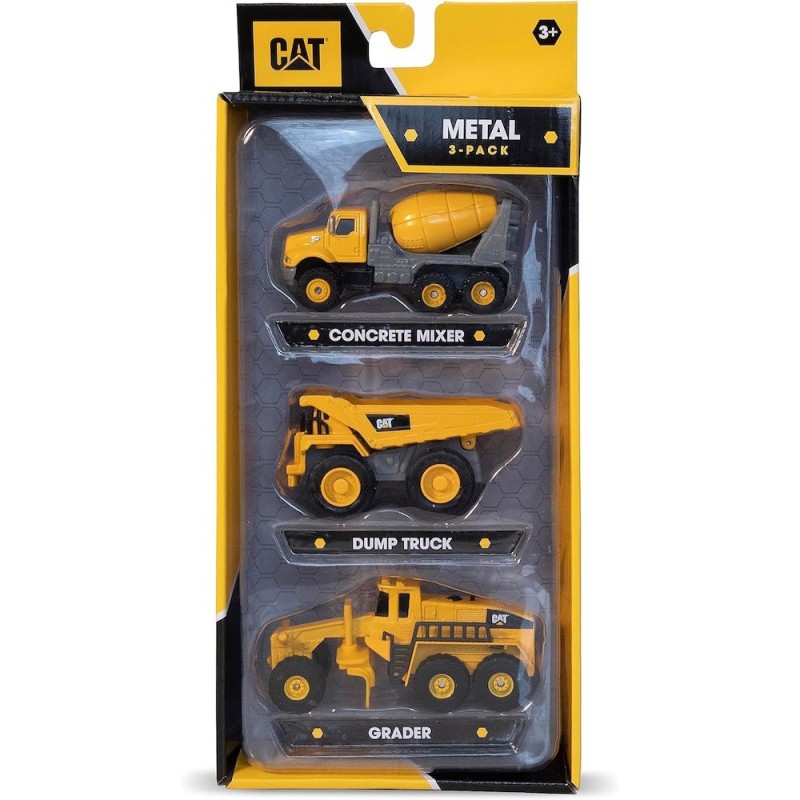 Edad recomendada: +3 años. Incluye camión volquete, hormigonera y calificador. Fabricados con materiales metálicos de primera calidad, estos coches están listos para enfrentarse a cualquier terreno y superar cualquier desafío que se les presente. ¡No hay límites para la diversión! Desde las distintivas marcas de Caterpillar hasta los detalles realistas de cada vehículo, cada coche está diseñado para impresionar y dejar una impresión duradera en la imaginación de los pequeños constructores.